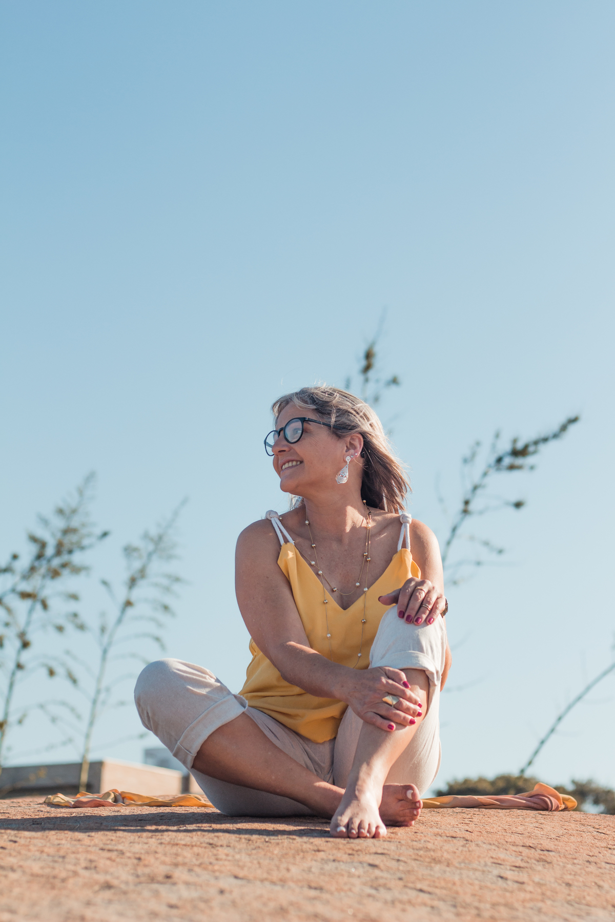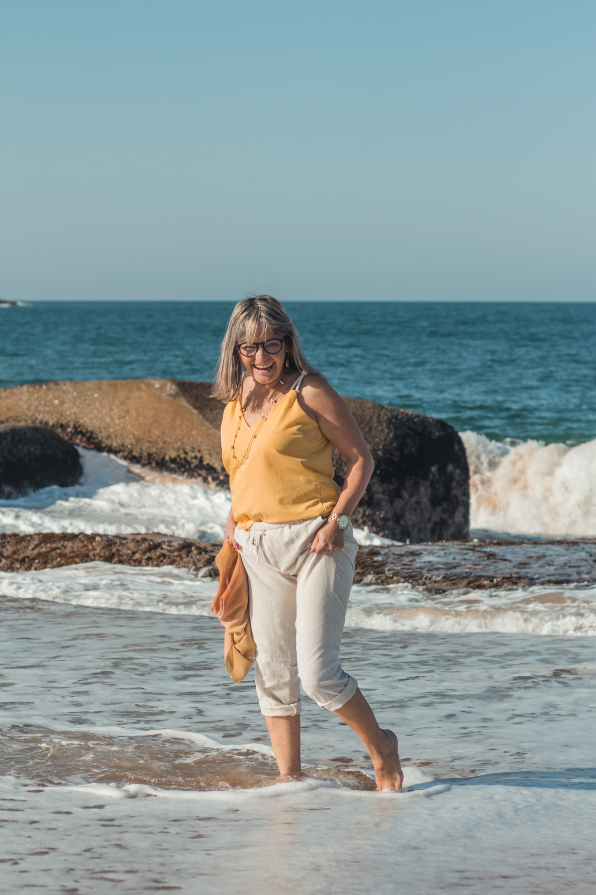 De um lado árvores, do outro mar. A frente grandes pedras, que limitam o espaço, mas que permitem você olhar o mar de cima, permite se banhar com a brisa e com os raios de sol. O ensaio de 50 anos da Cissa começou com um pouco de nervosismo, normal para o primeiro ensaio, mas logo ela já estava livre, leve e conectando-se com a natureza do jeitinho que ela ama. Ali encontrou a leveza que desejava, a liberdade que esperava e a tranquilidade que tanto precisava. Acalmando a mente e o corpo, numa entrega para si e para o mundo. A cada clique via a importância de se dar aquele momento.
